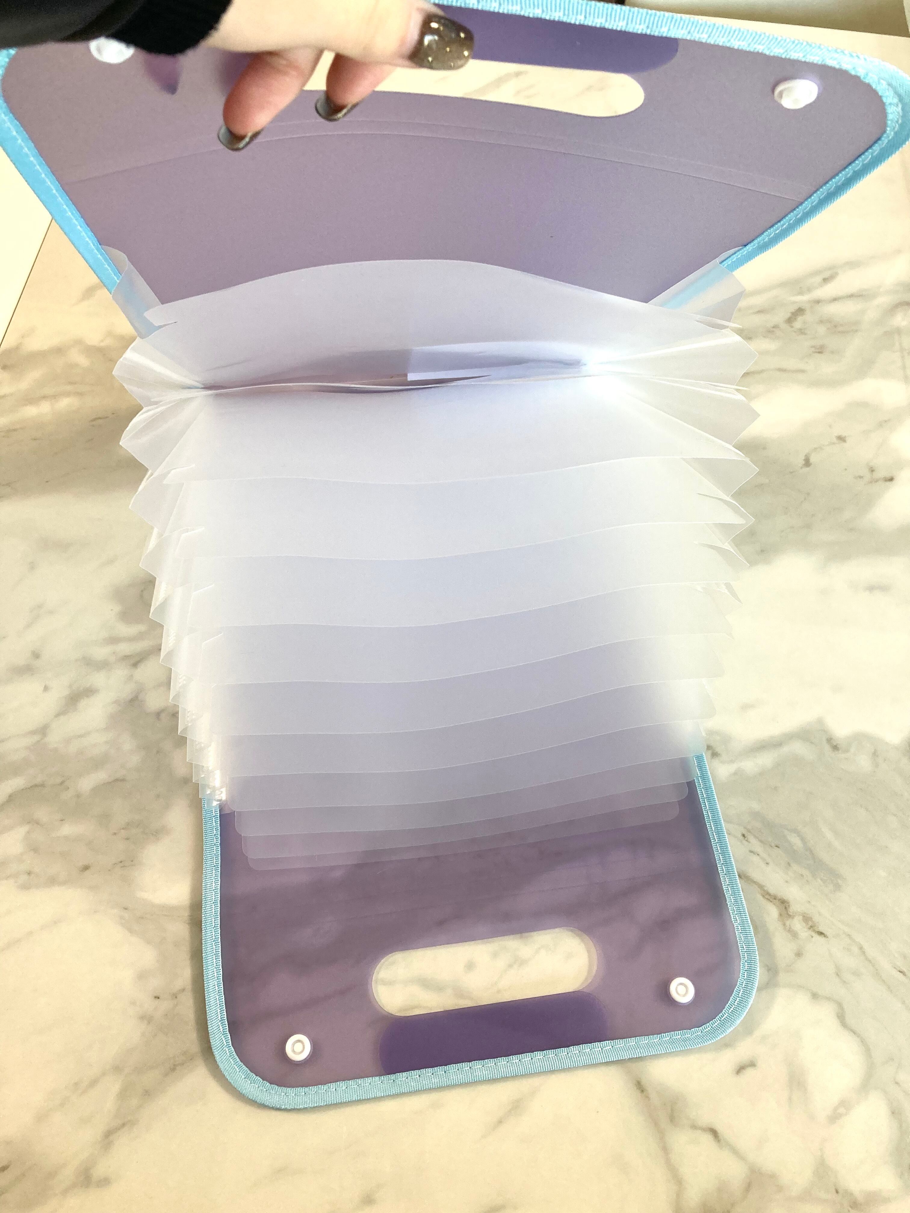 書類をまとめて整理収納ができるバッグ型ファイルケースで、蛇腹状に開くため中身を取り出しやすい!